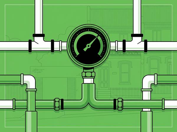- Pressure testing: Using calibrated gauges, we measure pressure at multiple points: meter, main line, hot water system, individual fixtures